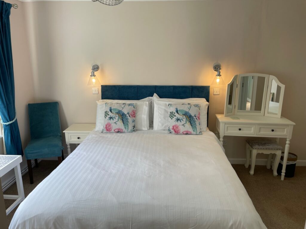 Muscovy Two is a cosy, dog-friendly ground-floor room, ideal for two guests. It features a comfortable king-size bed and an ensuite shower room. Located at the rear of the property, the room overlooks tranquil gardens, creating a peaceful retreat. Guests have their own entrance via an enclosed courtyard with a seating area, perfect for relaxing outdoors.
